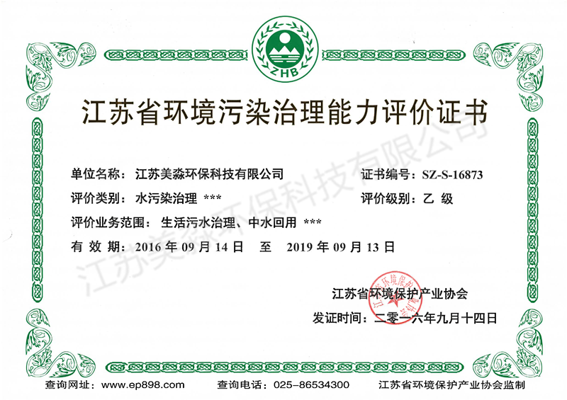 江蘇省環(huán)境污染治理能力評價證書 乙級