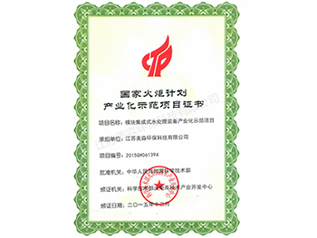 國(guó)家火炬計(jì)劃產(chǎn)業(yè)化示范項(xiàng)目證書